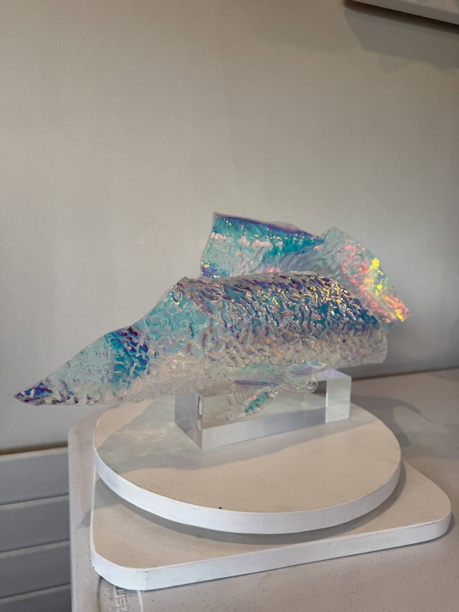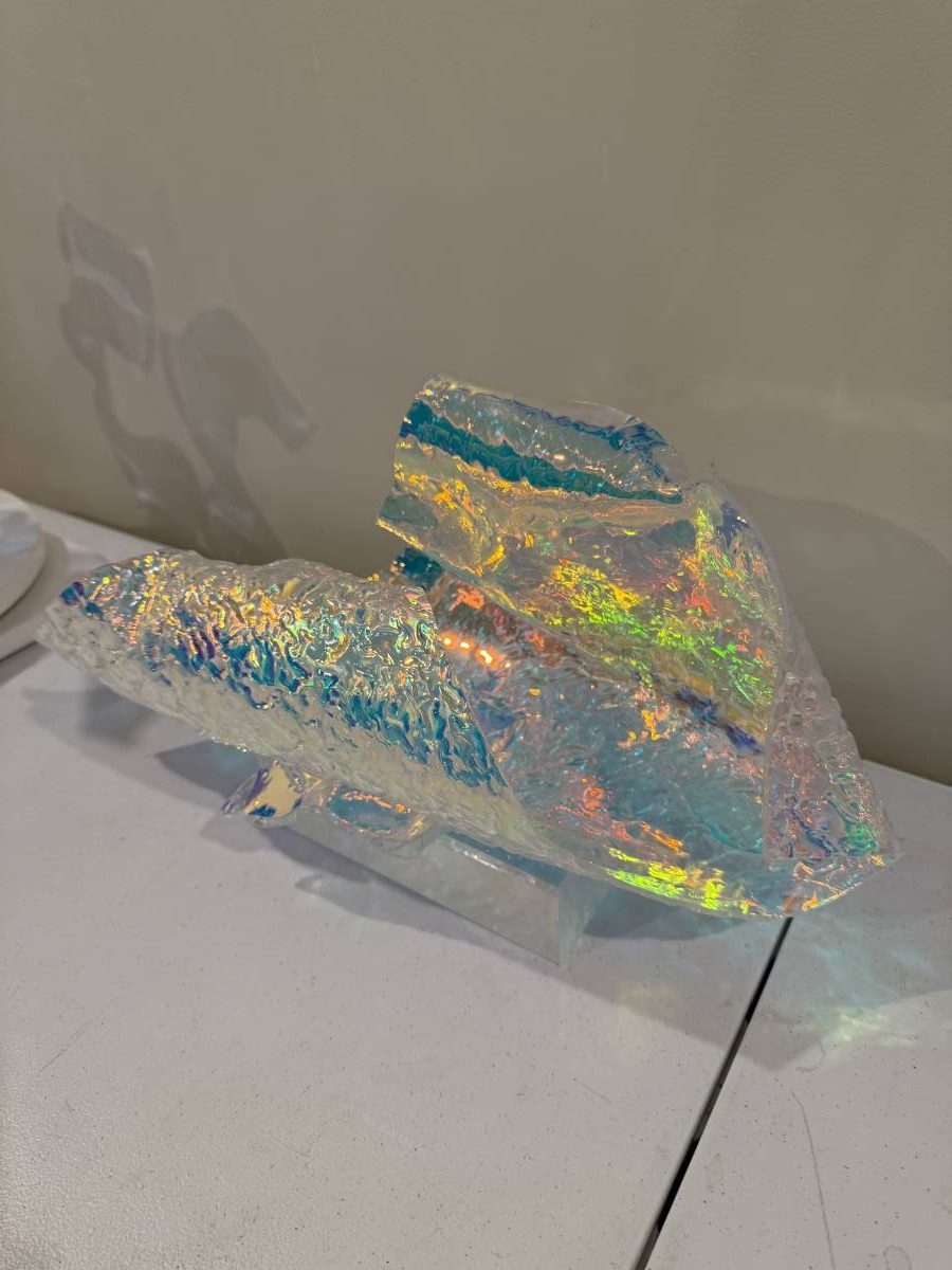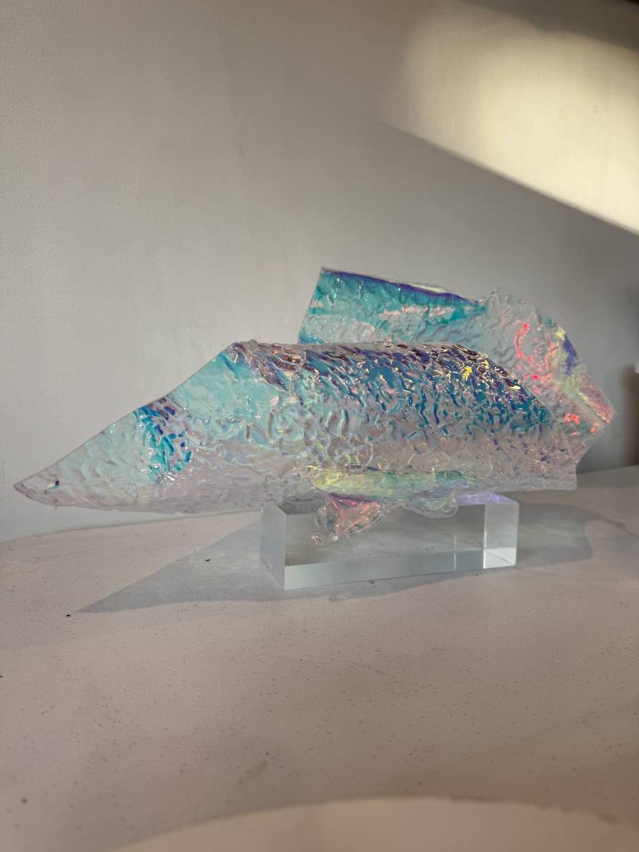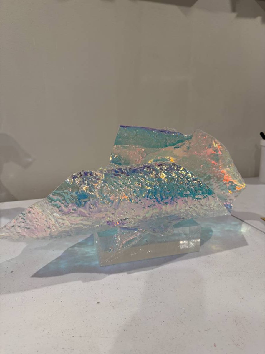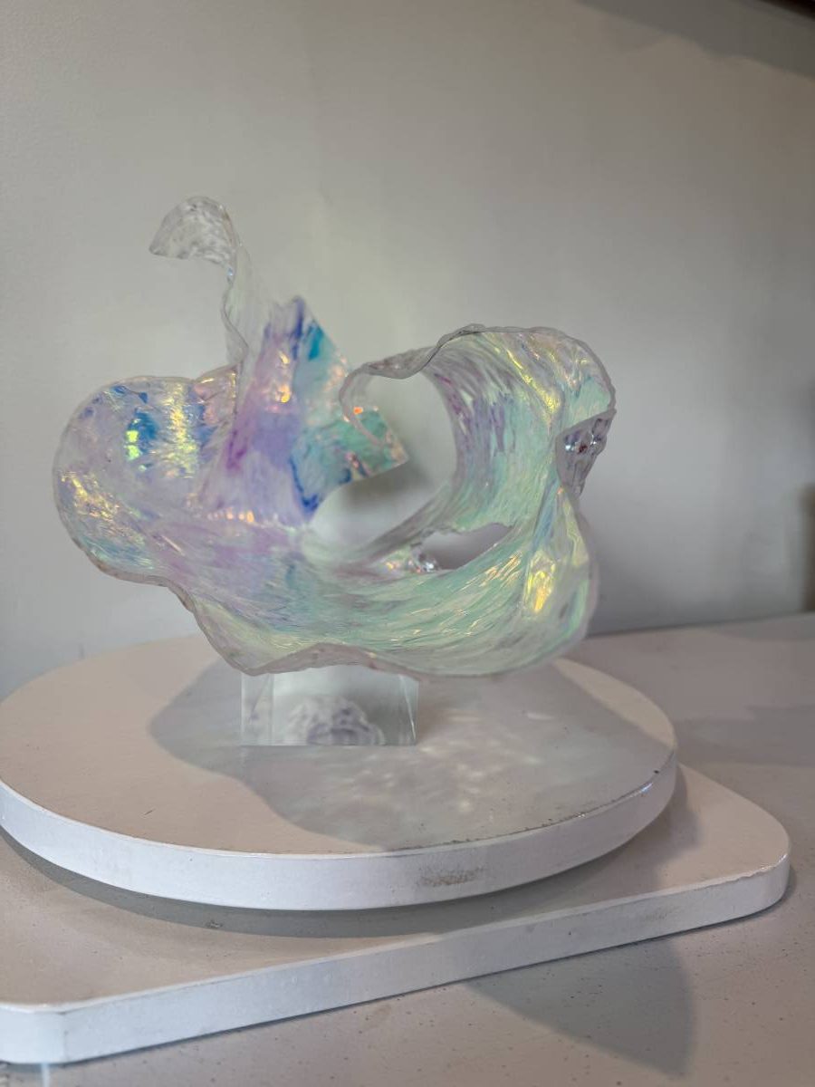 Escultura realizada en metacrilato texturado dicroico moldeado a mano/ Sculpture made of Dichroic texture PMMA hand molded